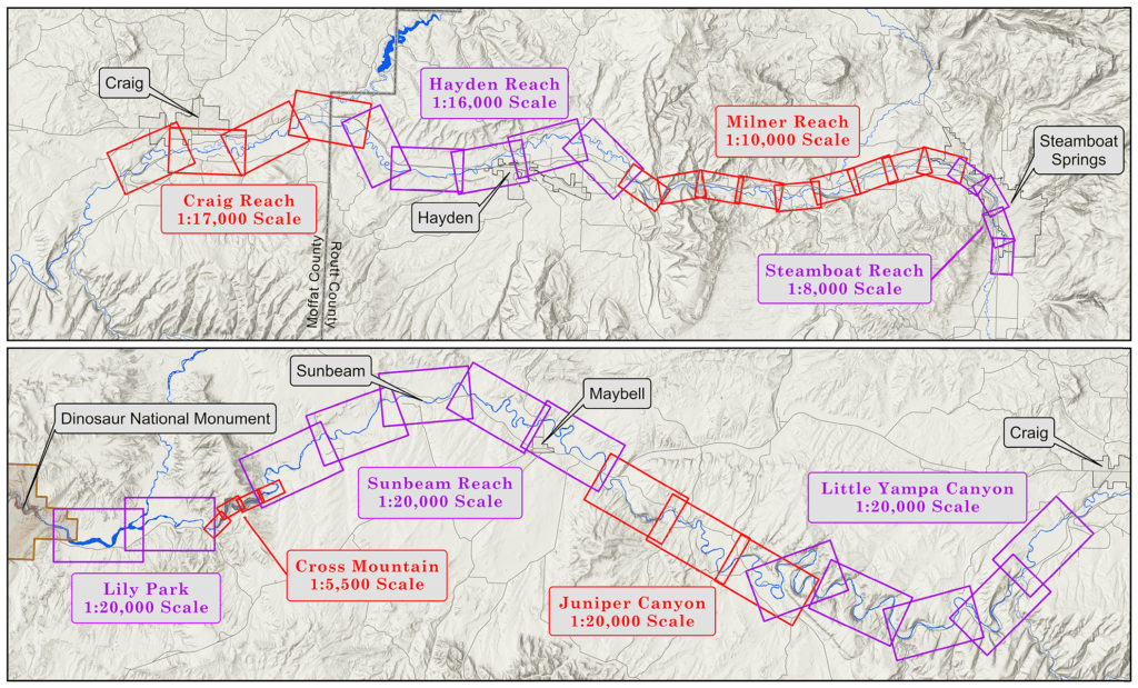 When the entire series has been completed it will cover approximately 158 miles of river, from the Chuck Lewis State Wildlife Area upstream of Steamboat Springs to the Deerlodge Park boat ramp on the eastern boundary of Dinosaur National Monument.